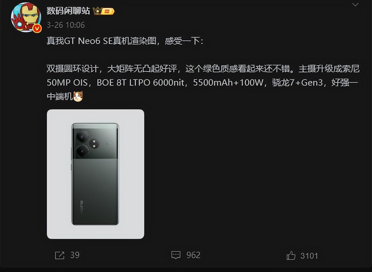 現在真我開始預熱了新一代GT Neo6系列,本次有SE和標準版兩款, 驍龍7+Gen3、驍龍8sGen3處理器, 預計也是一個“顛覆者”,會下放許許多多旗艦配置體驗,然后Duang的一聲,最低價格可能是1字開頭,真我卷麻了!