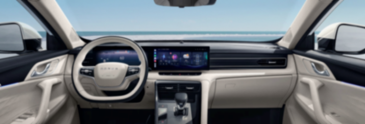內飾設計采用了居家設計理念,整個內部采用了大量的米色風格,看起來是比較溫馨的。中控配匹配了雙12.3英寸的貫穿式屏幕,搭載了榮威家族式的斑馬智聯系統,反應較為迅速,UI畫面做的很好,還搭載了8155芯片。此外,這款榮威D5X DMH有著大量的舒適配置,比如全景天窗,前排搭載的雙層靜音玻璃,后排空調出風口,豪華車內氛圍燈,更是擁有L2級別的自適應巡航系統。