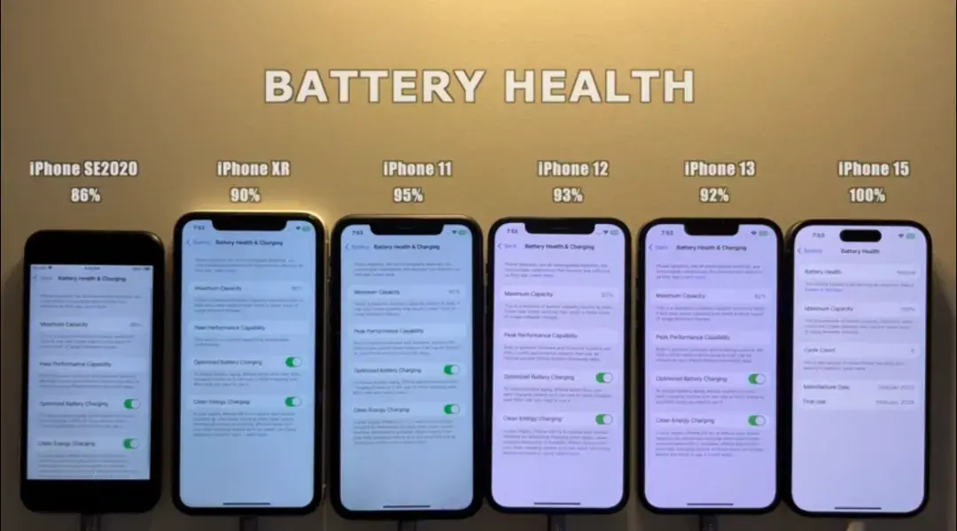 本次一共使用了5部設備進行測試,測試的iPhone 機型與17.4系統續航測試一樣,依序為:iPhone SE 2020 ,iPhone XR ,iPhone 11 ,iPhone 12 ,iPhone 13 ,iPhone 15。包含了從 A12 到 A15 芯片的老機型 iPhone和高性能的iPhone 15。