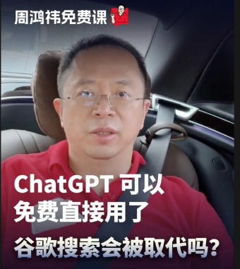 談到今年4月1日OpenAI宣布可直接使用一事,周鴻祎在視頻中表示,OpenAI宣布ChatGPT不需要注冊,直接可以使用,給了谷歌一拳,這實際上是直接把矛頭指向了谷歌。