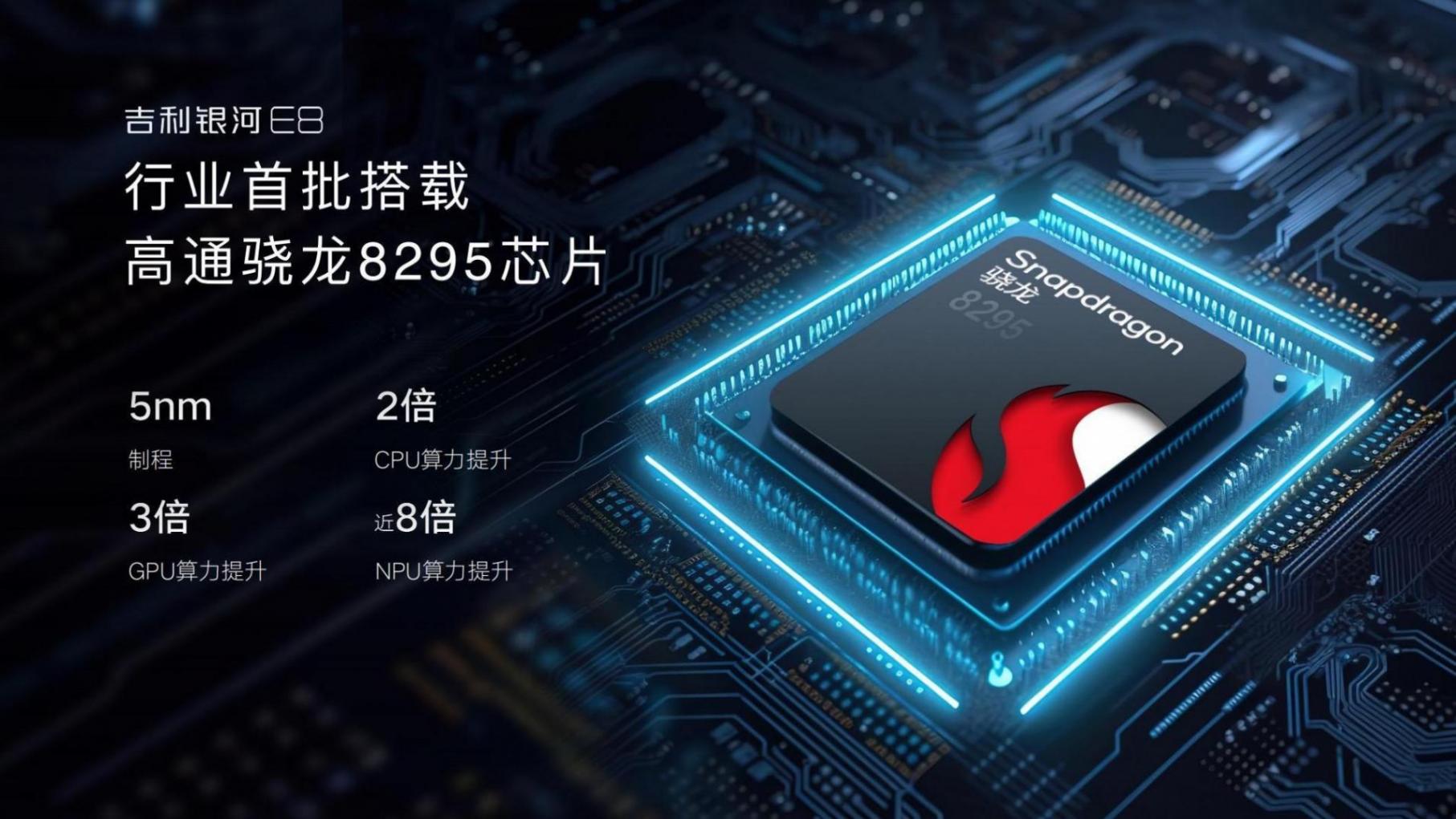 吉利銀河E8內飾方面最大的亮點就是那塊45英寸的大連屏,圖像分辨率高達8K,還搭載了高通驍龍8295旗艦座艙芯片,AI算力更為恐怖——是8155芯片的7.5倍。同時,銀河E8搭載銀河NOS無界版,3D桌面、時光引擎、交互靈動島、智能能量控制功能,帶來更沉浸、更逼真的視覺體驗。智能語音交互0.23s極速響應,全時免喚醒、全畫面可見即可說,用戶一句話可以包含15個指令,全車多人同時對話。同時支持車外智能語音交互,能夠在車外通過語音打開空調、電尾門,好玩又實用。