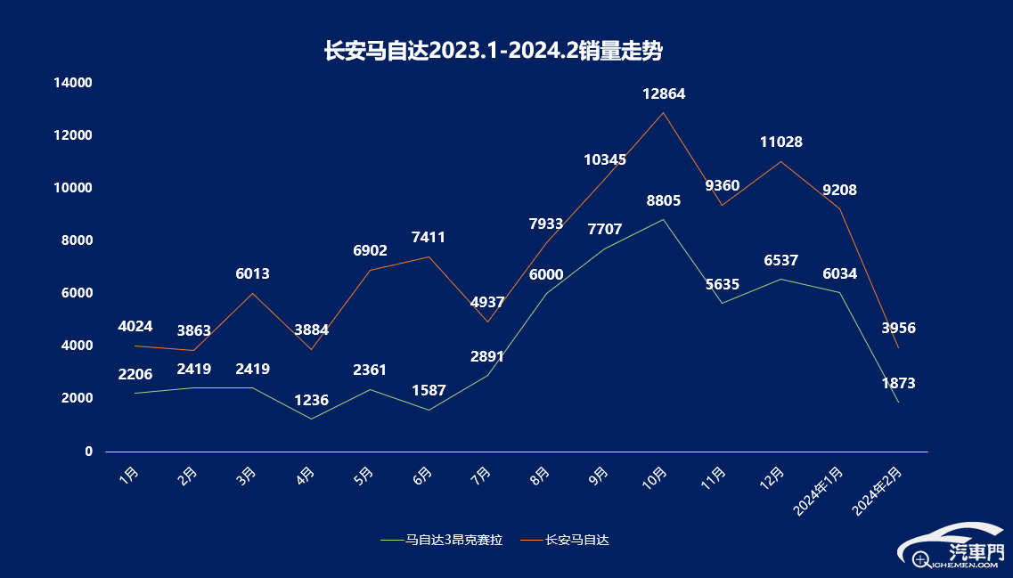 據公開數據顯示:自2017年以來,馬自達的銷量就開始逐漸下滑,自2022年以來,長安馬自達的月銷量再未突破過10000輛。
