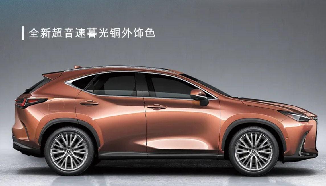 2024款雷克薩斯NX,新車一共提供8款配置車型可選,相較于老款車型,新車新增了NX350四驅創游版、四驅OVERTRAIL創界版,但是取消了NX260創享版、NX350h創享版/創領版/F SPORT車型。在造型設計方面,我們根據上方的圖片可以看到,2024款雷克薩斯NX基本延續了老款車型的設計風格,外觀上并沒有進行明顯的改動,前臉標志性的紡錘形進氣格柵,極具視覺上的沖擊力,碩大的車標LOGO標識鑲嵌其中,增添了幾分應有的品牌辨識度,加上兩側狹長且犀利的大燈組設計,從而使其整體看上去給人一種硬朗且大氣的視覺感受,此外,為了滿足不同車迷朋友們的審美,新車還新增了“超音速暮光銅”車身顏色可選。