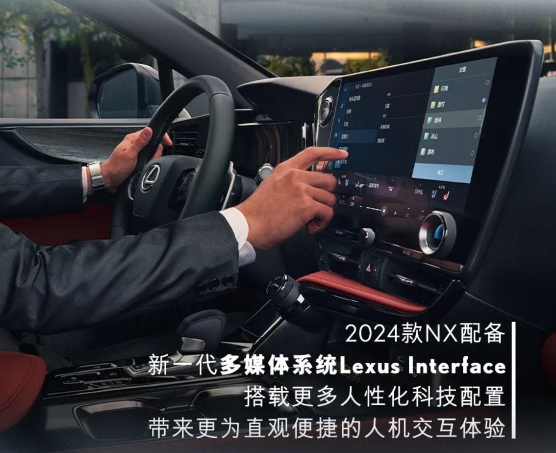 在車身尺寸方面,2024款雷克薩斯NX與老款車型保持一致,并沒有進行提升或縮減,新車車長為4660毫米,軸距為2690毫米。內飾設計方面,2024款雷克薩斯NX同樣也是基本延續了現款車型的設計風格,只不過,在部分細節以及配置上進行了一定程度的升級和優化,新車采用了Tazuna韁繩概念座艙設計,新增了皓白色內飾配色可選,做工以及用料上,看上去給人感覺很扎實,中控區域布局清晰簡潔,全液晶儀表盤+懸浮式中控大屏,提升了幾分應有的科技感,并且還將支持蘋果CarPlay手機互聯,此外,新車氛圍燈光系統還進行了全面優化,Type-C也升級成了雙Type-C,全系標配新一代LEXUS雷克薩斯智能安全系統LSS+ 3.0,因此,在舒適性以及智能科技感方面,相較于老款車型,2024款雷克薩斯NX的表現自然是更為出色。