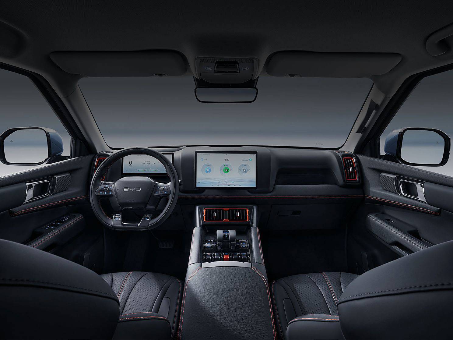 配置方面,比亞迪SHARK搭載了可旋轉式12.8英寸中控屏、內置智能語音、540度全景影像、唱吧等功能,還可支持Apple CarPlay/Andriod Auto手機互聯!主駕駛位配備了6向電動調節、座椅加熱和通風等功能,前排配備50W手機無線充電,另外還配備了手機遠程控制及L2級駕駛輔助功能等等。整體來說,配置水平還是很不錯的。