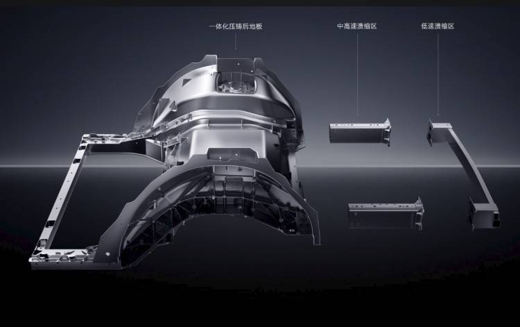 傳統(tǒng)造車思路中,從前防撞梁到前縱梁,到籠式車身,再到后底板,最后后防撞梁,足足有上百種組件鉚接焊接而成,這是業(yè)內(nèi)基本操作。2020年9月特斯拉Model Y開始使用6000t級(jí)的壓鑄機(jī)對(duì)后地板進(jìn)行一體式壓鑄,總重量降低30%,制造成本降低40%,而在今天,這項(xiàng)技術(shù)已經(jīng)成為國內(nèi)高端電車制造的主流選擇。