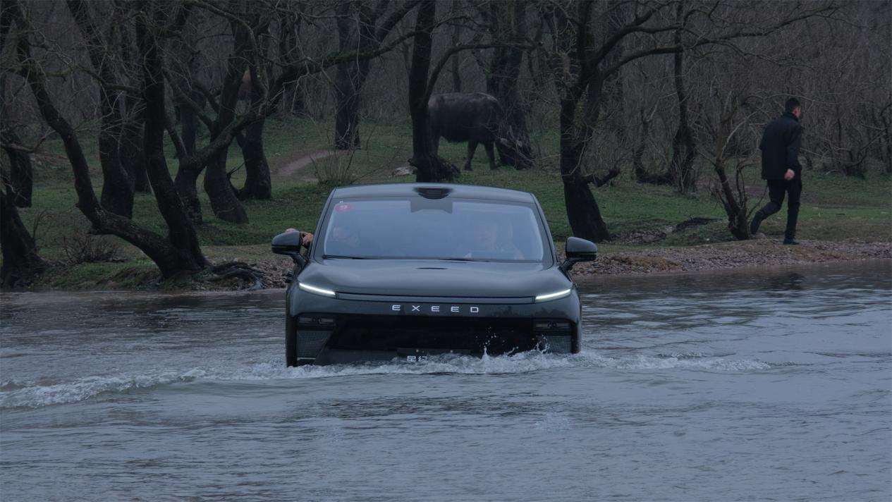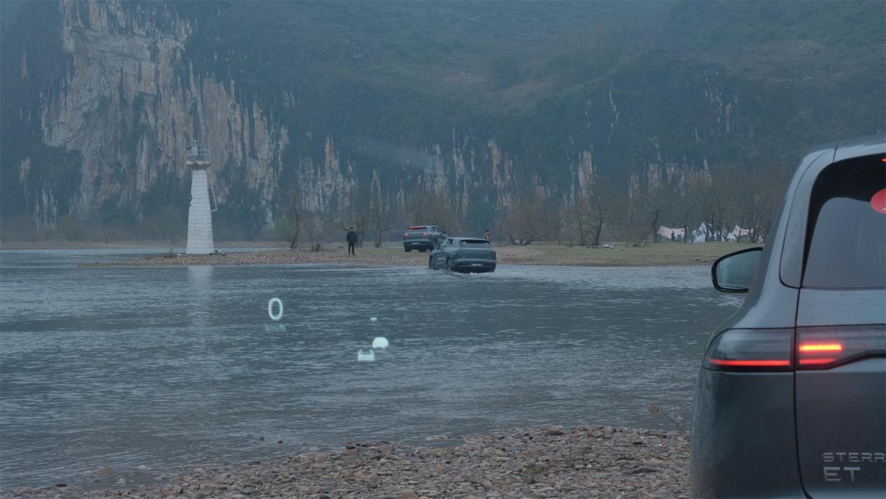 有一說一,面對稍顯湍急的江水,我心里并不是很有底。雖說別人的車越野性能總是最好的,但星紀元ET畢竟不是硬派越野,而且還是臺電動車,屁股下有塊大電池呢,擱誰誰不慌。『別怕,開啟「越野模式」直接淌過去就行了,這臺車穩的很』教練看出了我的擔心,底氣十足地鼓勵道。聽完教練的話,我心一橫,便一頭扎進江水中去。