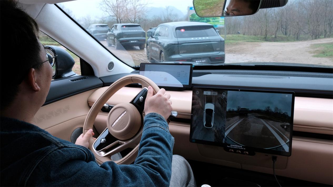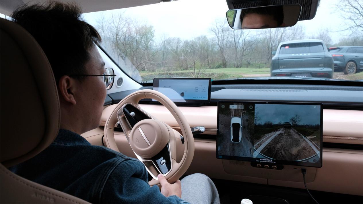 試駕之前,我們本來以為這個頭頂大『包』的家伙會先秀下自己的智駕能力。萬萬沒想到,工程師們上來就帶我們在河邊的淺灘開啟了一番越野之旅。