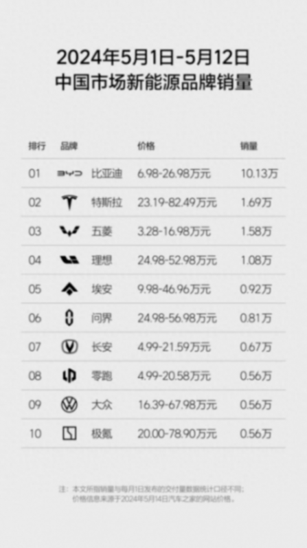 近日,國內乘用車市場最新一周銷量數據出爐。作為國內乘用車市場斷檔式領先的存在,5月1日-5月12日,比亞迪12天累計銷量已經超過了10.13萬輛,其中5月6日-12日銷量達到了6.85萬臺,創下了今年以來的周銷量最高記錄。