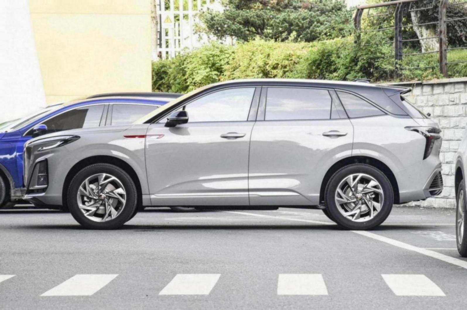 側(cè)面提供了拼色方案,看上去會(huì)更年輕,翼子板位置,搭配了一個(gè)可點(diǎn)亮的紅旗燈。其余環(huán)節(jié)線條比較流暢,而和同級(jí)競(jìng)品對(duì)比,尺寸方面有輕微的越級(jí),長(zhǎng)寬高在4655×1900×1668毫米,車身軸距在2770毫米。輪轂是刀鋒元素,看上去肌肉感會(huì)比較突出一些,尺寸方面有19英寸。車頂位置去看,在后三角車窗位置,加入了輕微溜背效果,看上去有一定的轎跑感。