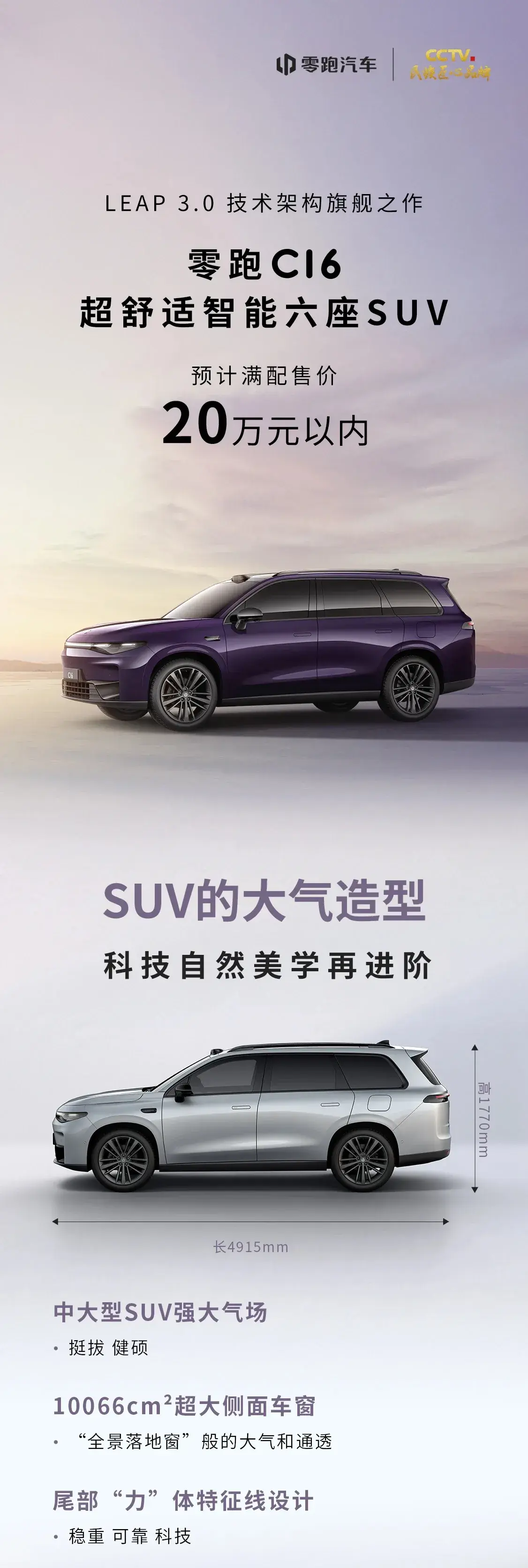 零跑C16提供增程純電雙動力選擇,純電車型標配全域800V高壓平臺,相比400V系統(tǒng),大幅減少了純電車補能時間。