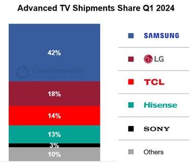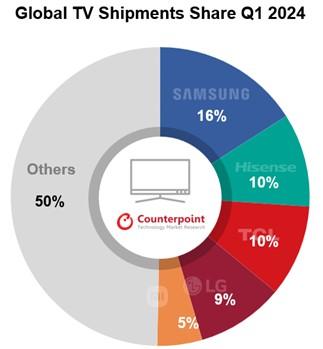 Counterpoint:三星電視Q1領跑全球市場,海信、TCL緊隨其后