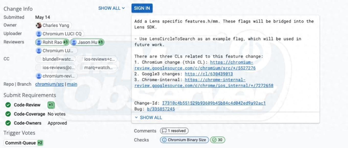 消息源 The Mac Observer 近日挖掘 Chromium 提案發現,谷歌計劃為 iOS 版 Chrome 瀏覽器添加“Lens Circle to Search”新的實驗 Flag,用戶可以通過在屏幕上畫圈圈來查找項目,啟用之后該功能將可以調用 iOS 設備上的 Google Lens 實現。