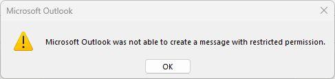 受影響用戶即便重新安裝 Outlook 或者創建新的賬號都無法解決這個問題。受影響的客戶在嘗試使用 Microsoft 加密技術回復信息時,會收到錯誤信息,提示 "Microsoft Outlook 無法創建權限受限的信息"。