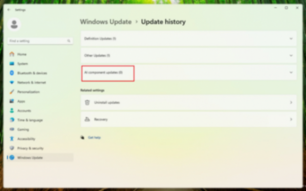 在未來的新版本Windows版本中,Windows系統更新將會新增一個類別,這就是AI組件更新 (AI component updates),——顧名思義,該分類主要用來羅列、顯示與AI相關功能的更新。