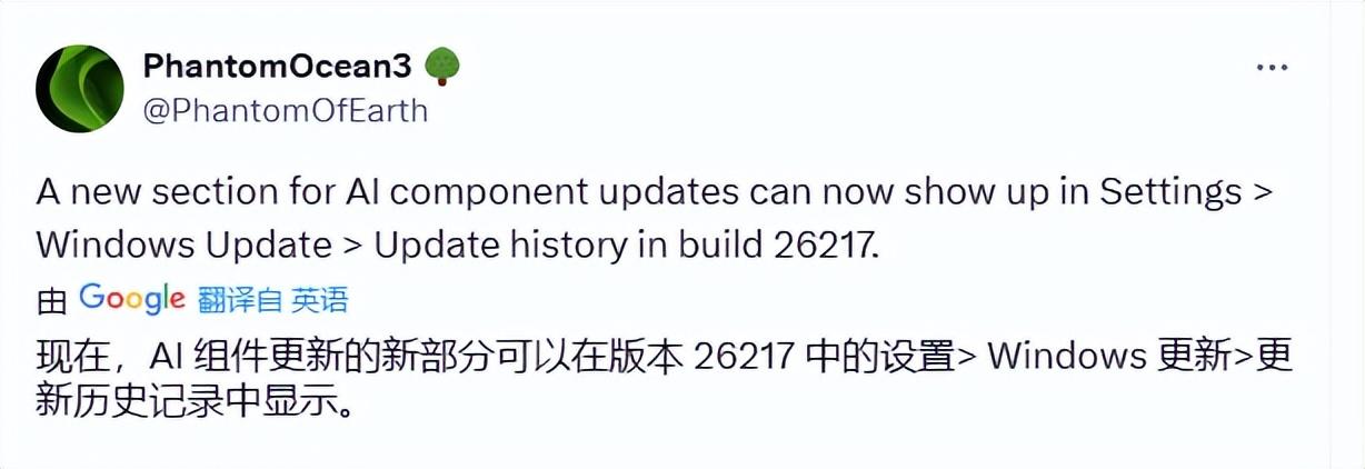 請注意:目前“AI組件更新”這個類別已經在面向開發者預覽版的Windows 11 Build 26217版本中推出、存在,請參閱上圖。