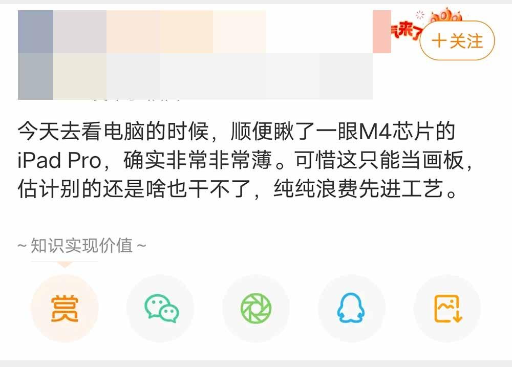 還有人吐槽更直接,除了當畫板什么也干不了:“純純浪費先進工藝。”有網友提醒這位博主,其實iPad Pro還能當泡面蓋子。