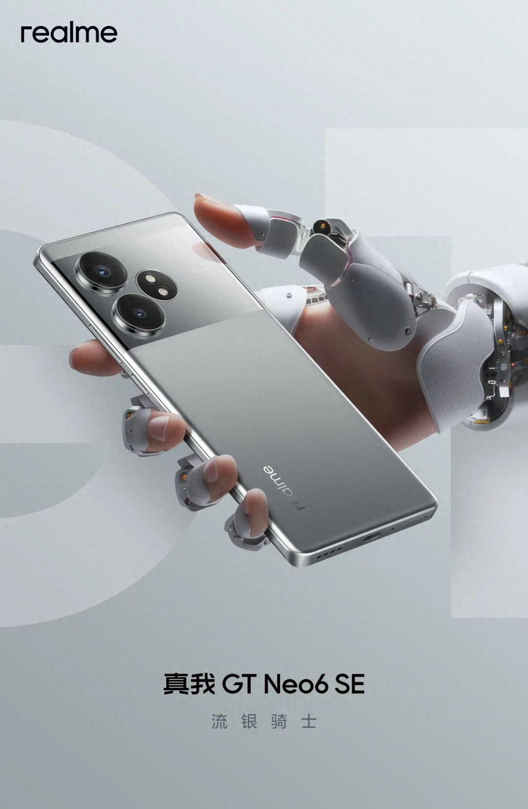 realme公布了真我GT Neo 6 SE的「流銀騎士」配色,后蓋采用光啞拼接設(shè)計,打造出一種金屬的質(zhì)感,同時采用不銹鋼鏡頭環(huán)、納米鏡面鍍膜工藝,迷霧AG紋理,官方透露機身重約191g。