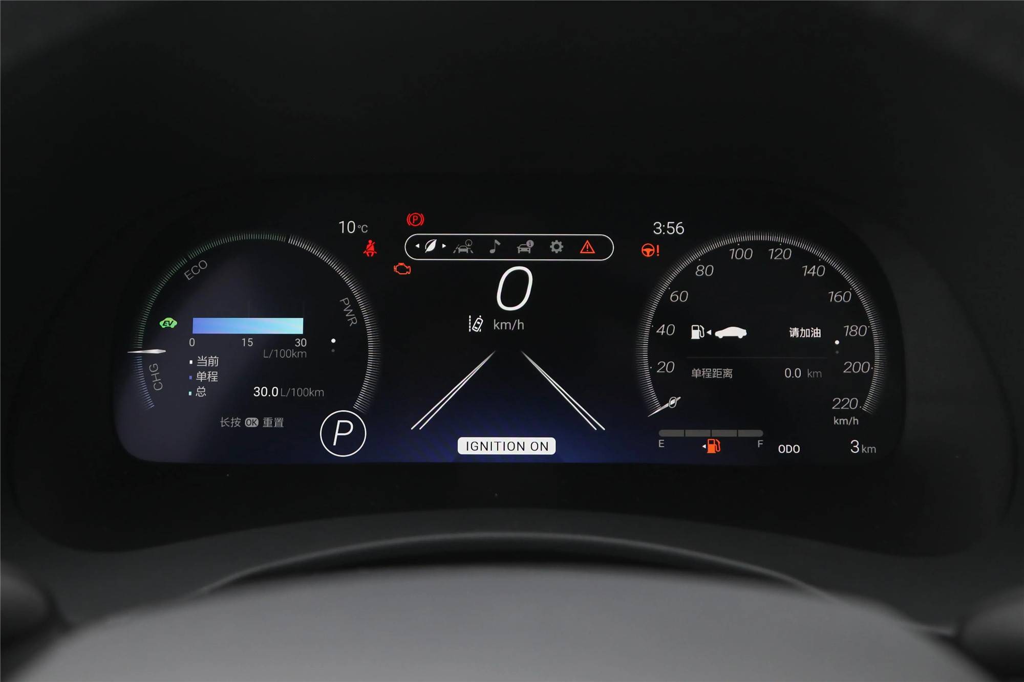 12.3英寸的儀表屏則位于多功能方向盤前方,能夠實時顯示車輛的各種信息,另外不同的駕駛模式下儀表屏的背景顏色也會呈現不同的顏色,同時儀表屏上方還配備了HUD抬頭顯示系統,科技感還是比較足的。