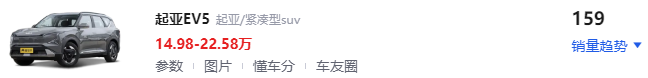 第五臺新車起亞EV5,去年年底剛上市的車型,上個月只交付了159輛,這個差距還是非常大的!外形設計非常霸氣,很有肌肉感,內(nèi)飾質(zhì)感也是非常不錯。售價起步14.98萬,頂配22.58萬,上市6款車型,純電續(xù)航里程會提供530公里,長續(xù)航720公里,以這樣的定價區(qū)間和這個成績,還是比較有競爭力的,如果再便宜個2萬到3萬,那簡直不要太香!