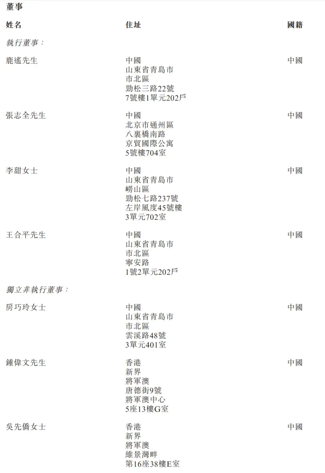 眾淼創新執行董事分別為鹿遙、張志全、李甜女士、王合平;獨立非執行董事分別為房巧玲女士、鍾偉文、吳先僑女士。