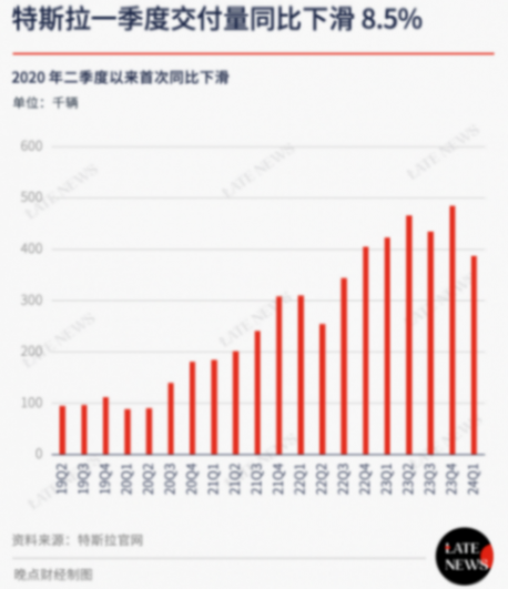 特斯拉一季度交付了 386810 輛新車,同比減少超 8.5%,為 15 個季度以來首次同比下跌。就在不到一個月前,特斯拉宣布在 4 月 1 日漲價,期望觀望的客戶在一季度下單。