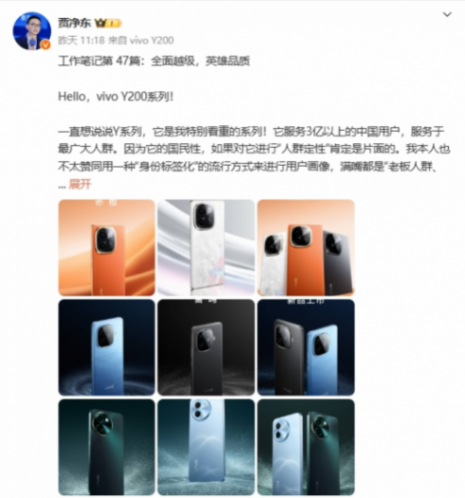 賈凈東還透露,vivo Y200系列擁有獨創“職業模式”,這是為快遞騎手“加演的戲份”:好信號助力搶單、電話接聽默認免提、延長鎖屏時間、戶外增亮屏幕顯示。