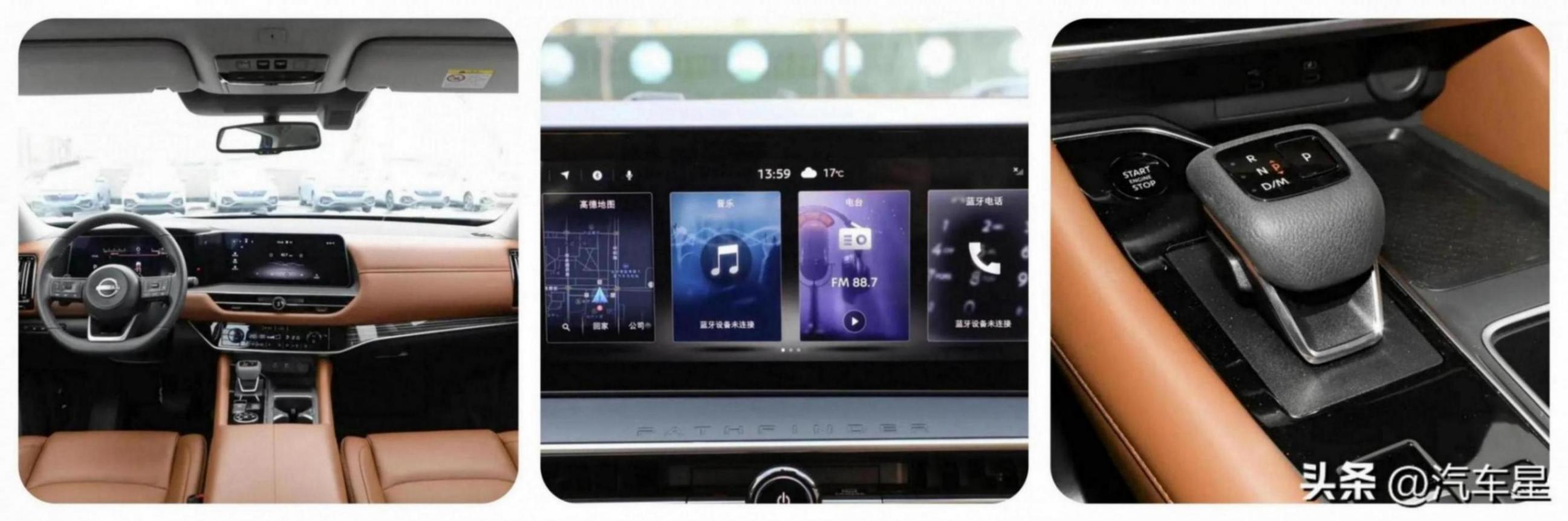 日產探陸采用T字型布局,主要以黑色和深棕色搭配,顯得大氣精干,中控臺下部分以及常用地方,還有銀色鍍鉻亮條、軟性皮質和黑色鋼琴烤漆面板,摸起來質感明顯,真皮多功能方向盤支持上下+調節和換擋,還有單色氛圍燈。