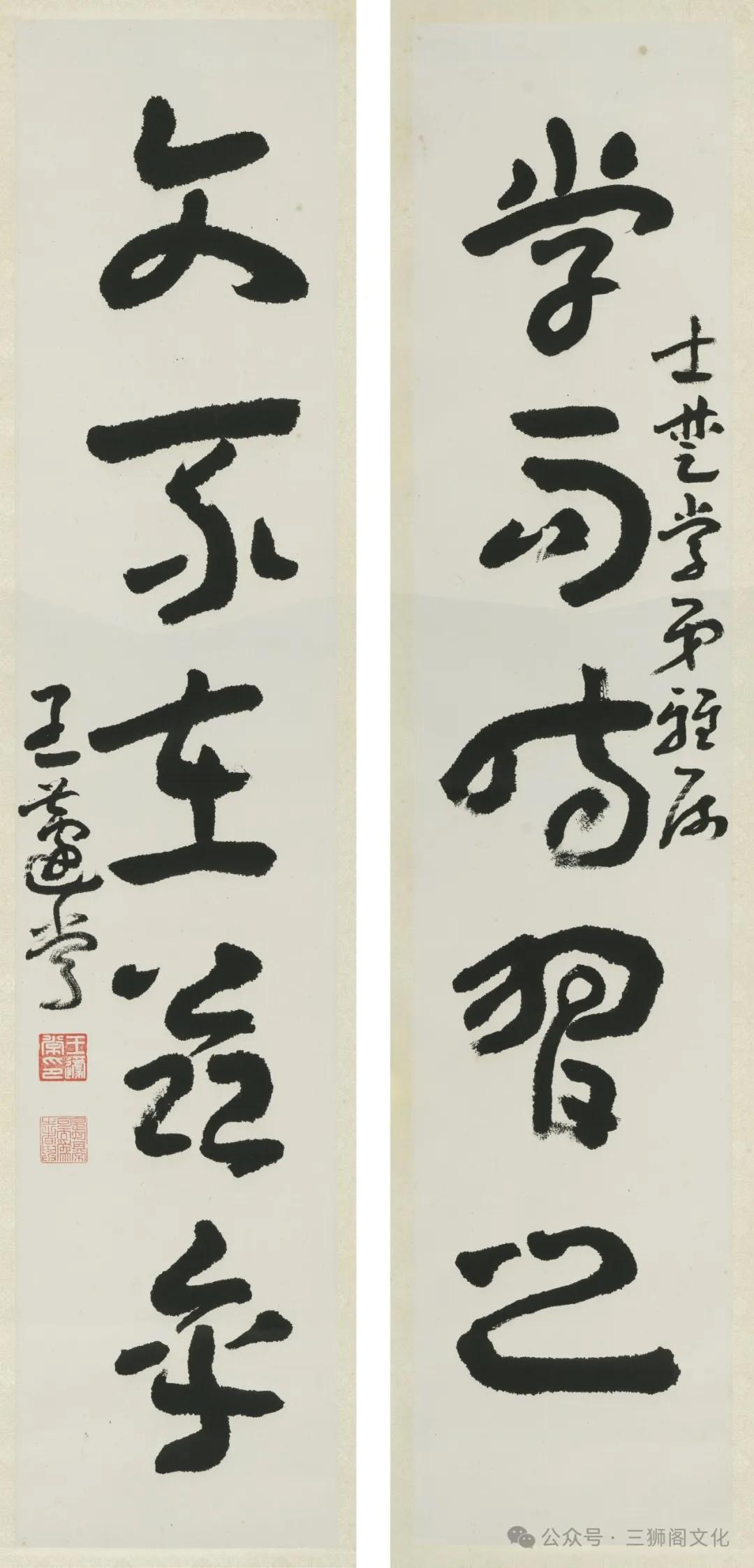 王蘧常,《學(xué)而時(shí)習(xí)之、文不在茲乎》 紙本,對聯(lián) 94.5cm×20.0cm×2
