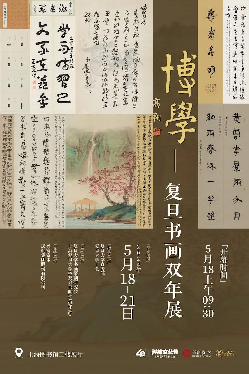 5月18日上午,復(fù)旦大學(xué)“博學(xué)——復(fù)旦書畫雙年展”書法展在上海圖書館(淮海中路)二樓展廳舉行。