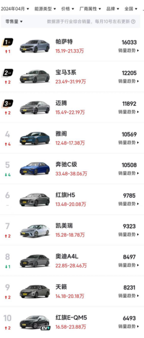 都說如今新能源汽車橫掃各個市場,但在4月份的中型轎車銷量榜前十名里,除了紅旗E-QM5,其余的車型則全部都是燃油車,這也意味著在中型車還沒有被新能源車型徹底“攻占”,仍留有非常大的市場空間。