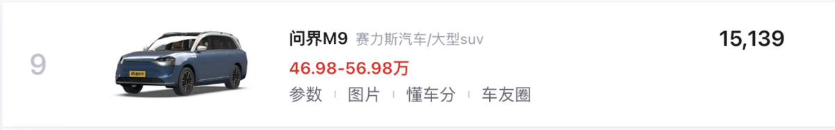 問界M9(第09名/46.98-56.98萬元)以50萬級的旗艦級定位進入到新能源車市場TOP10,既是意料之外,也是預料之中。華為提供的全棧智能汽車解決方案,從核心的DriveONE到“巨鯨”800V高壓平臺,再到ADS 2.0與Harmony OS 4,車輛處處都在投入業內最佳之一的技術總成,配合首創的32英寸幕布+車規級投影系統,整體展示出來的旗艦水準也符合它的定位。