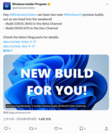 5 月 18 日消息,微軟今天面向 Dev 頻道的 Windows Insider 項目成員,發(fā)布了適用于 Windows 11 的 KB5037869 更新,用戶安裝后升至 Build 26120.670。