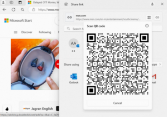 您還可以可以在 Edge 瀏覽器中使用 Windows Share 為網(wǎng)頁生成二維碼。此外,現(xiàn)在還可以將文件共享到 Microsoft 帳戶和 Microsoft Teams 頻道及群組聊天中使用的電子郵件地址。