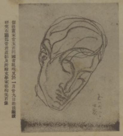 1927年《圖畫時報》刊載常玉繪邵洵美像。