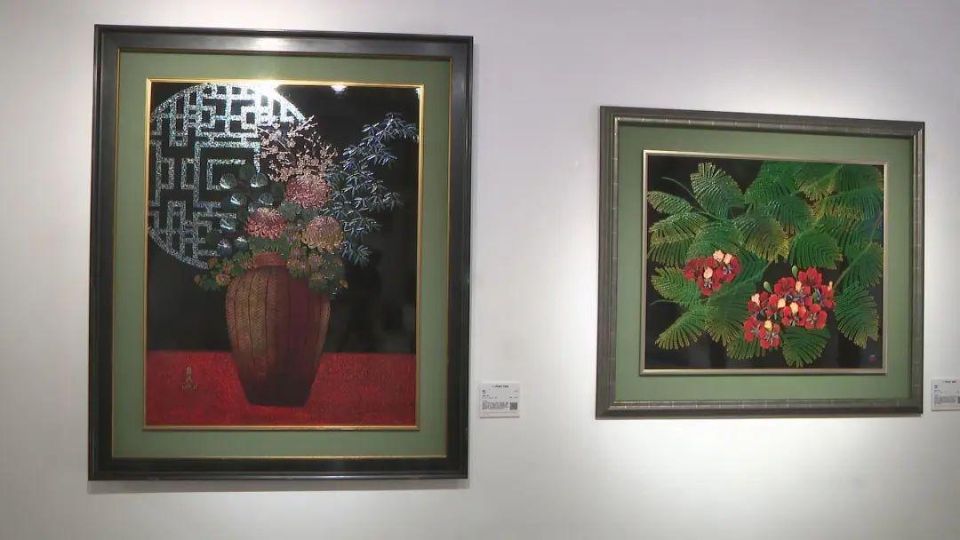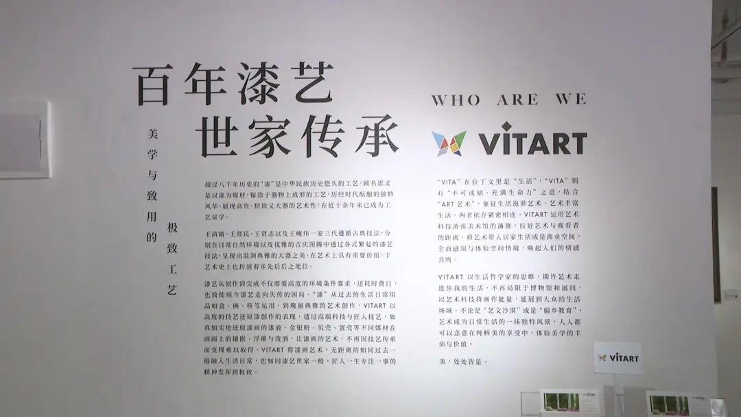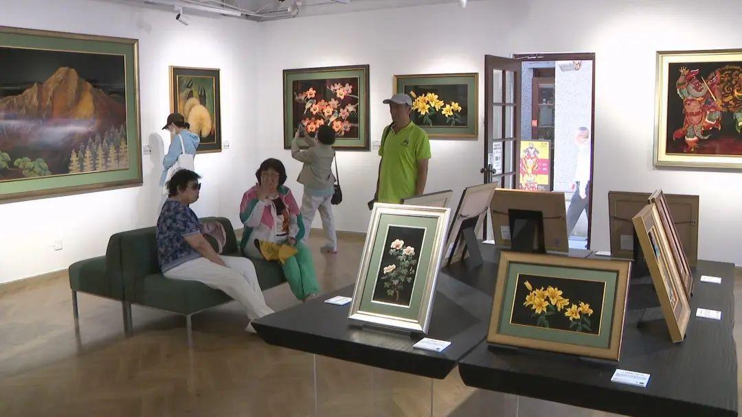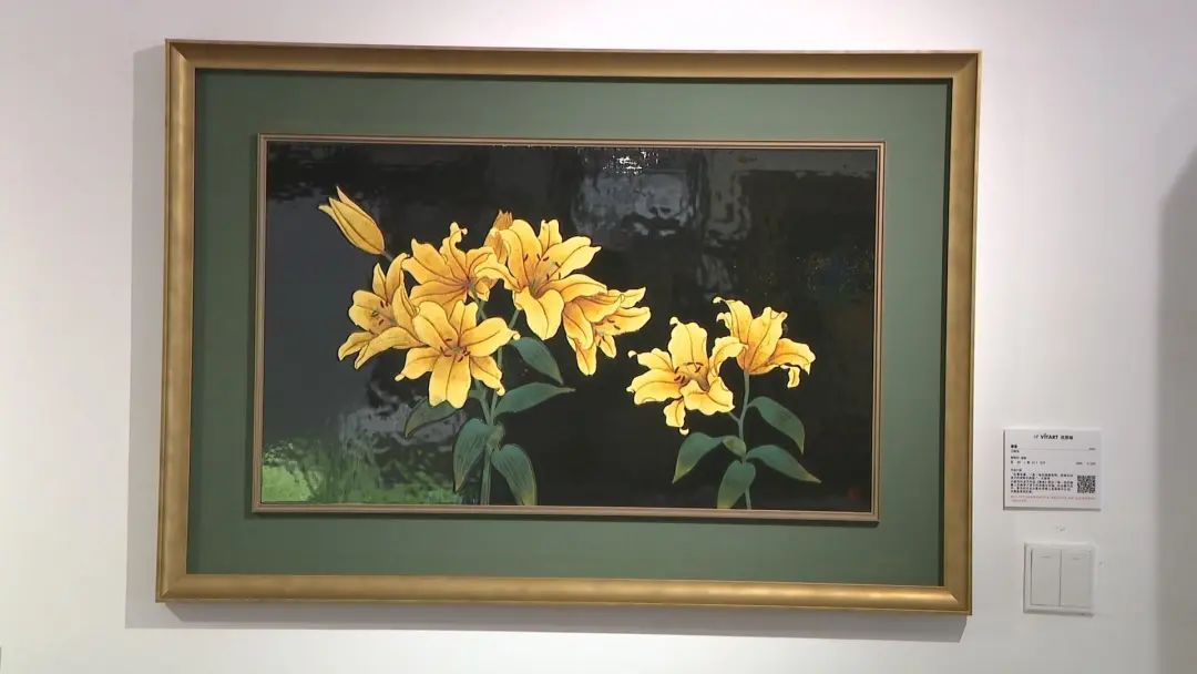 來自中國臺灣的王清霜、王賢民、王賢志以及王峻偉一家三代遵循古典技法,分別在日常自然環境以及優雅的吉慶圖騰中透過各式繁復的漆藝技法,呈現出溫潤典雅的大器之美,在藝術上具有重要價值,于藝術史上也扮演著承先啟后之地位。展覽中,最為珍貴的是102歲的王清霜在80歲時創作的《春郊》。這幅真跡作品描繪的是春天初現之際,九九峰下油菜花田盛放的景象。王清霜運用蒔繪的金色勾勒出黃昏時分的金黃光芒,螺鈿的銀色則點綴了翩翩起舞的白粉蝶,層次堆疊不斷延伸至遠方的夜幕,宛如一片希望綻放的美麗景致。觀眾王女士告訴記者,覺得這個畫比較特別,非常精致,在外面沒有看到過,特別好看。
