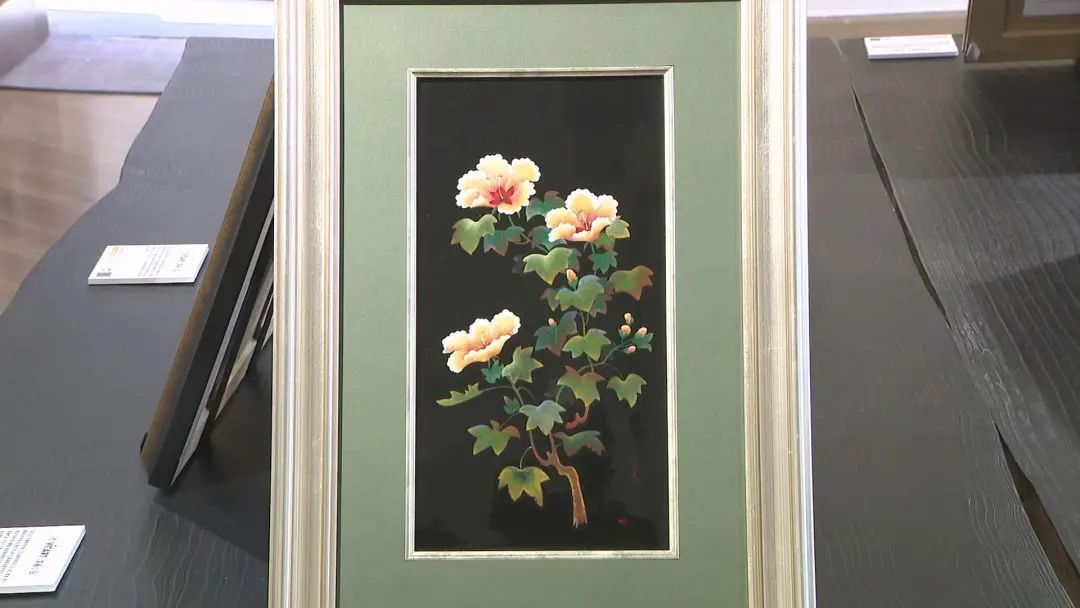 這幅真跡作品旁邊的作品是以高度的技藝還原漆創作的復制品。漆藝從創作到完成不僅需要高度的環境條件要求,還耗時費日,也致使現今漆藝走向失傳的困局。如今人們可以透過高端科技與匠人技藝,真實地還原漆畫的漆液、金銀粉、貝殼、蛋殼等不同媒材在畫面上的鑲嵌、浮雕與潑灑,讓漆畫的藝術,不再因技藝傳承而變得難以取得。