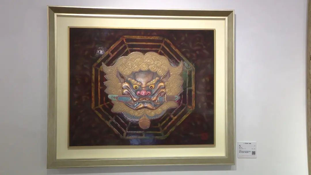 展覽展出的其它作品都是復制品,但這些復制品由于運用了高端技術,藝術價值也很高。這幅王清霜的漆畫復制品作品《劍獅》巧妙地運用了高蒔繪技法,選用天然漆和金粉,獨具藝術品味。作品中的祥獅以八卦劍姿展現,寓意降魔驅邪。