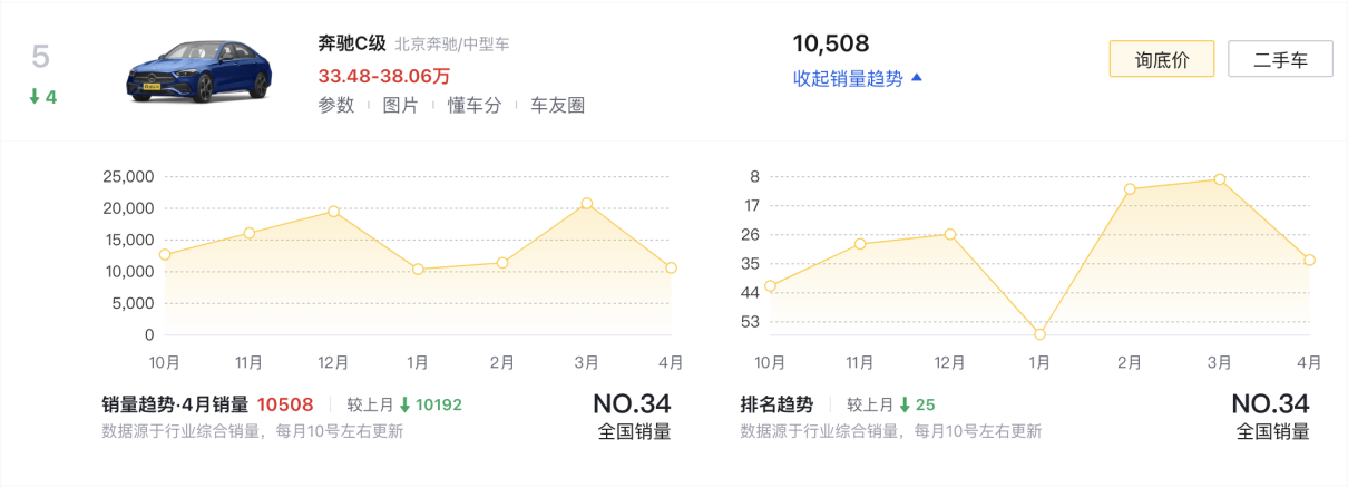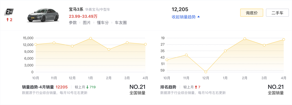 BBA當(dāng)中的34C三款車型也都進(jìn)入到了TOP10,其中,寶馬3系(29.99-39.99萬元)高居第2名,而奔馳C級(33.32-38.06萬元)、奧迪A4L(32.18-40.08萬元)則分居第5名、第8名,通過三款車型中唯一提供標(biāo)準(zhǔn)軸與長軸距兩種國產(chǎn)選項(xiàng),擁有更出色操控樂趣與年輕化設(shè)計(jì)的寶馬3系,保持了更強(qiáng)的市場號召力,也通過擴(kuò)大消費(fèi)群體覆蓋面的方式實(shí)現(xiàn)了BBA中的最高銷量。