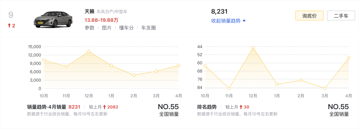 除了雅閣與凱美瑞之外,“日系三劍客”中的另一位也順利入圍TOP10,它就是排在第9名的日產(chǎn)天籟(17.98-23.98萬元)。剛剛推出了紀(jì)念車型黑金版的天籟,在三劍客里一直都扮演著運(yùn)動選手的角色,盡管沒有提供混動選項(xiàng),但2.0L的高效率、2.0T的高性能,再加上其在座椅舒適方面的獨(dú)到見解,反而讓它避開了兩位對手的“舒適區(qū)”,從而得以保持市場地位。