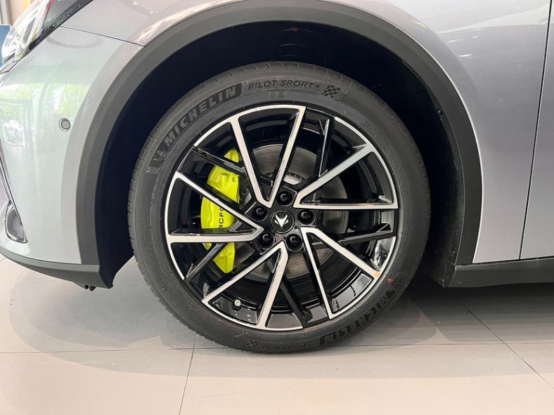 輪轂采用雙五幅設計,鏤空的程度很高,沒有低風阻的元素。輪胎規格為245/45 R19,型號為米其林PS4,采購價不低。