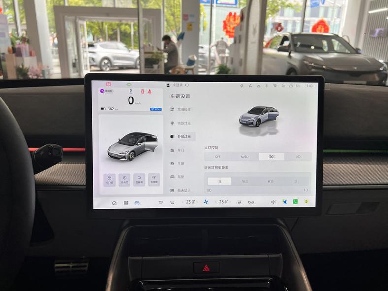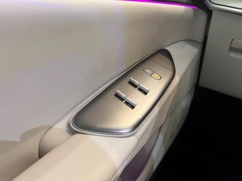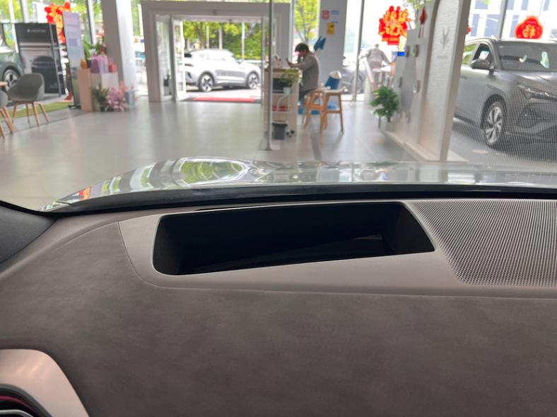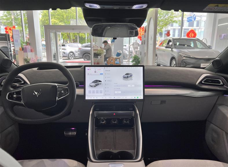 坦率的講,內飾設計并沒有什么新意,都是時下流行的一些元素。中間是一塊懸浮式中控屏,取消了儀表盤,車輛信息可以通過HUD抬頭顯示查看。整個座艙沒有那種油膩的豪華感,主打簡約現代風。
