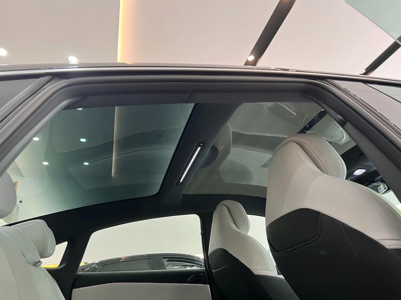 新車配備了全景天幕,分前后兩段,后面那塊玻璃直接掠過后排乘員的頭頂,夏天防曬是個問題。