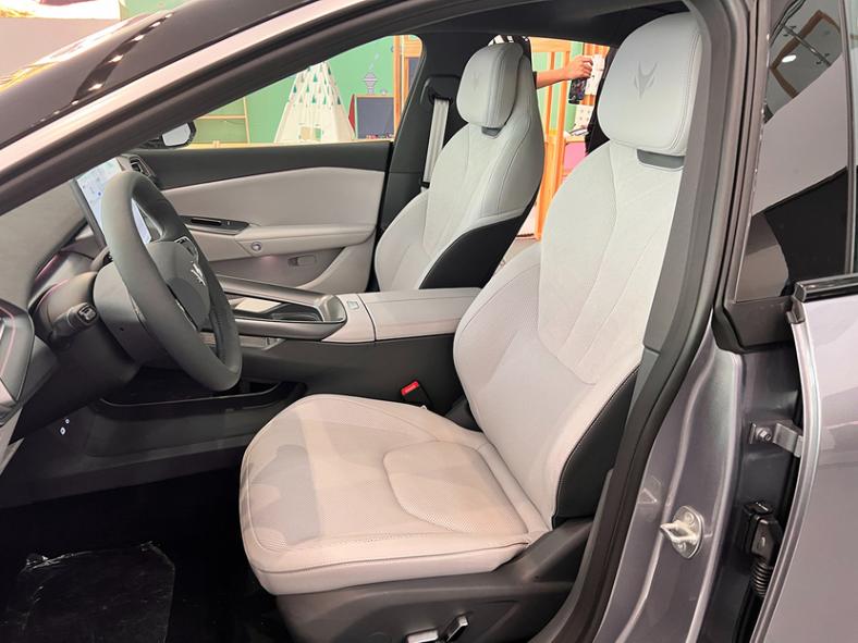 座椅采用一體式的運動造型,材質和皮革。功能方面,沒有腰部支撐,不過有加熱和通風。