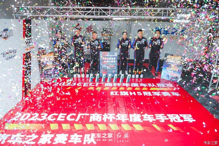 2023賽季是汽車之家AHRT賽車隊首次與一汽紅旗合作,我們僅用時30天就完成了一項外界看起來不可能完成的任務:將一臺紅旗H5(參數|詢價)打造成為賽車。2023 CEC首站天津站紅旗H5賽車可謂是一鳴驚人,首秀便拿下了全場季軍以及全場最快圈的成績,隨后紅旗H5賽車越戰越勇,分別在鄂爾多斯拿下組別冠軍和季軍、寧波站拿下了全場冠軍和亞軍。在全年5場比賽結束后,汽車之家AHRT賽車隊憑借穩定且優異的成績,之家車隊奪得了2023 CEC廠商杯自主品牌B組年度車隊冠軍,王濤則奪得了組別年度車手冠軍。