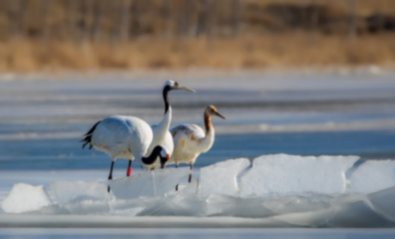 2022年12月29日,丹頂鶴南遷時來到野鴨湖濕地自然保護區停留棲息,且攜帶一幼鳥。