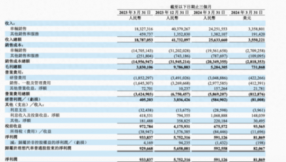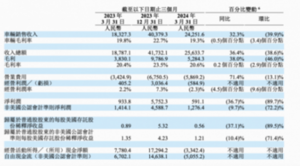 理想汽車營收的主要部分均由車輛銷售收入構成。財報顯示,2024年第一季度,理想汽車車輛銷售為人民幣 243 億元,同比增長32.3%,環比下降 39.9%。對于車輛銷售收入的環比下降,理想汽車公告稱,主要是受到與中國春節假期相關的季節性因素的影響及3月份銷售訂單不及預期導致的車輛交付量減少。