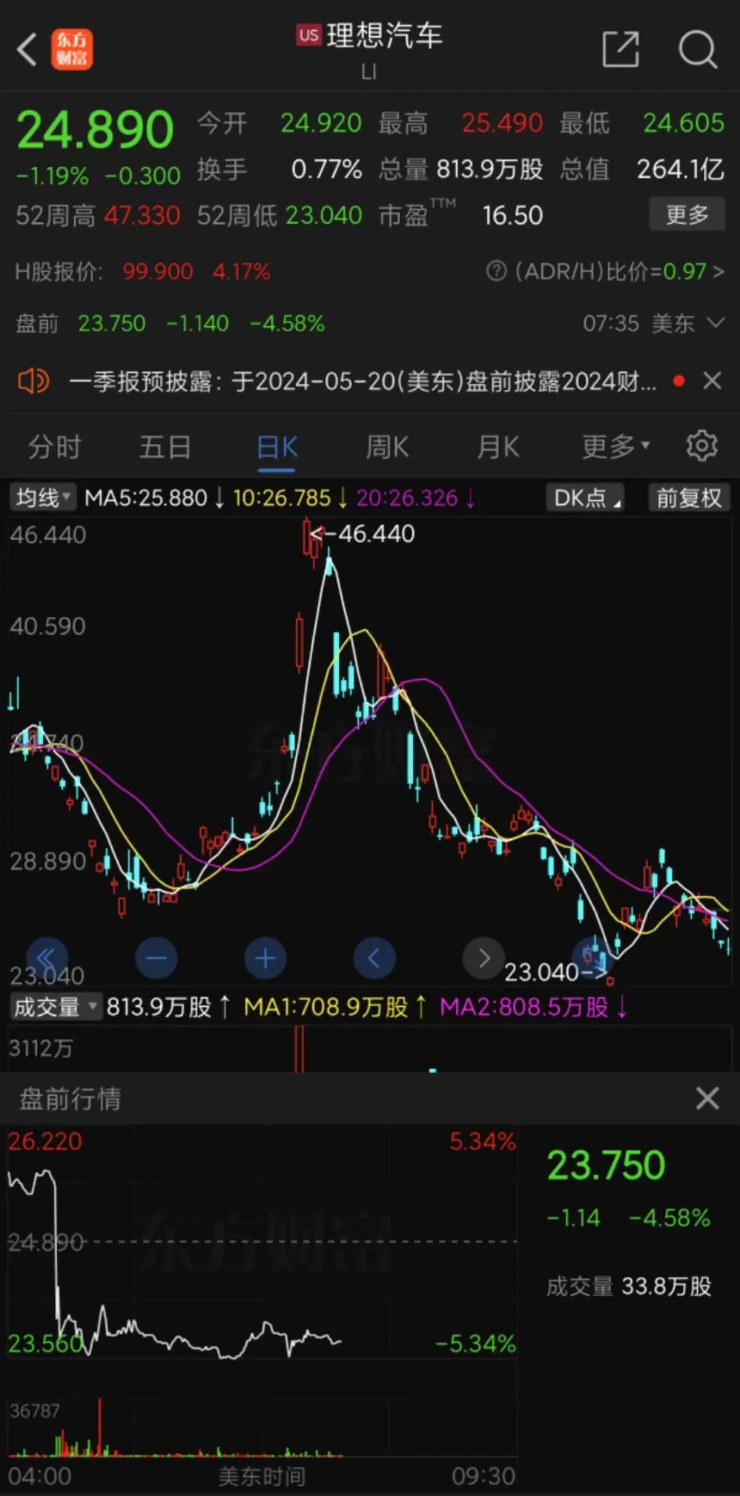 凈利環比下滑近90%!理想汽車股價大跌