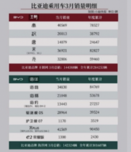 在出口方面,比亞迪3月乘用車出口量為38434輛。