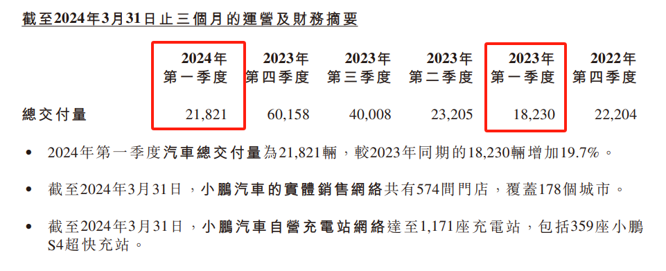 2024年一季度,小鵬汽車累計銷售21,821臺,環比下降65%,同比增長19.7%。